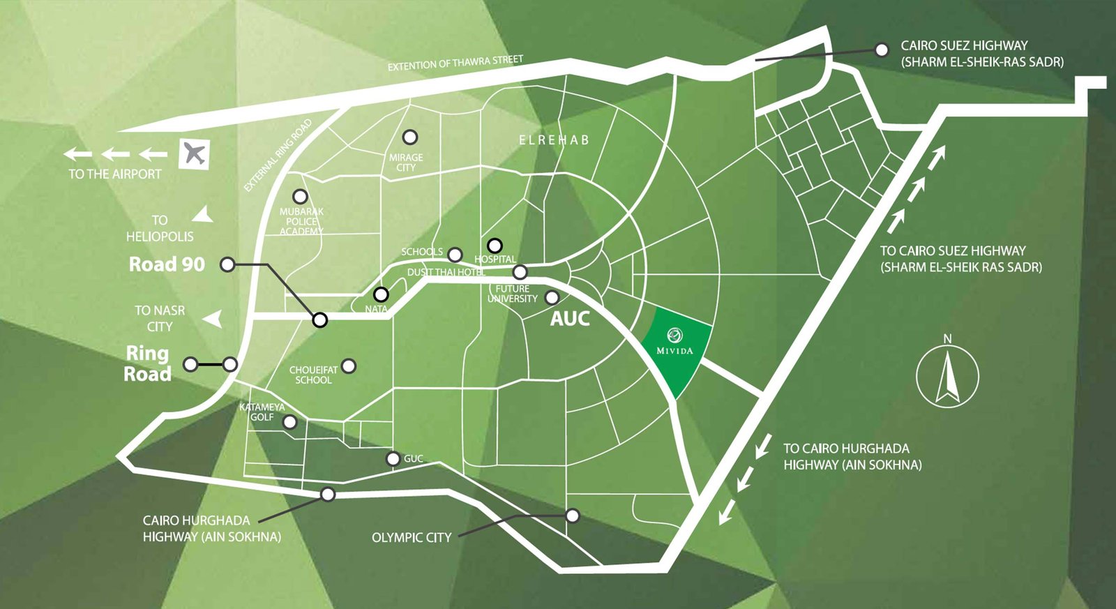 يقع مشروع ميفيدا بوليفارد ريزيدنسز يالقاهرة الجديدة المربع الذهبي داخل كمبوند ميفيدا اعمار التجمع الخامس كذلك على بعد 15 دقيقة من مدينة نصر ومصر الجديدة.