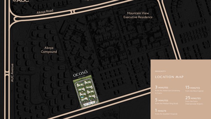 أكاسا القاهرة الجديدة له عنوان مميز , هو حي بوتيك في قلب القطامية القاهرة الجديدة. يقع أكاسا في أكثر المواقع تميزًا وازدهارًا في القطامية في التجمع الخامس ، وهو يدمج التجارب الحضرية الراقية مع البيئات الطبيعية الهادئة