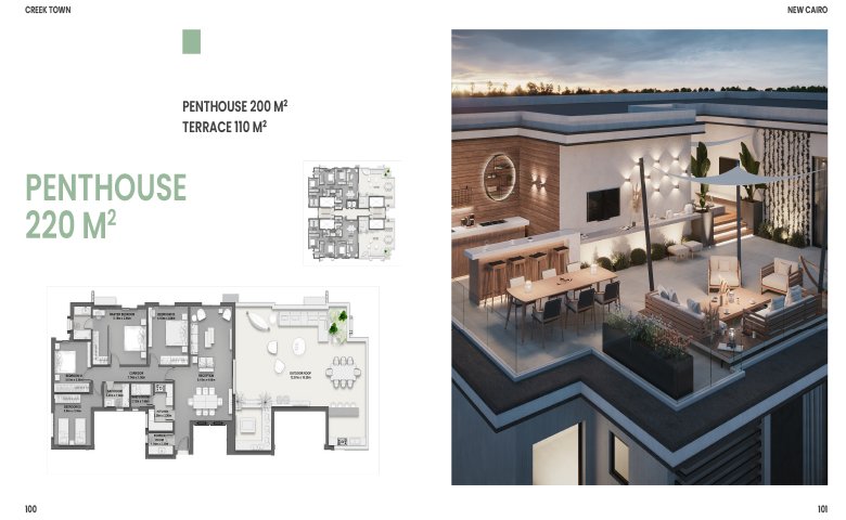 جميع المعلومات والأسعار والتخطيطات وخطة الدفع والمرافق ووسائل الراحة في جميع المعلومات والأسعار والتخطيطات وخطة الدفع والمرافق ووسائل الراحة في كريك تاون - القاهرة الجديدة بينتهاوس 224 متر, 4 غرف نوم 4 حمام, بواسطة الكازار للتطوير العقاري