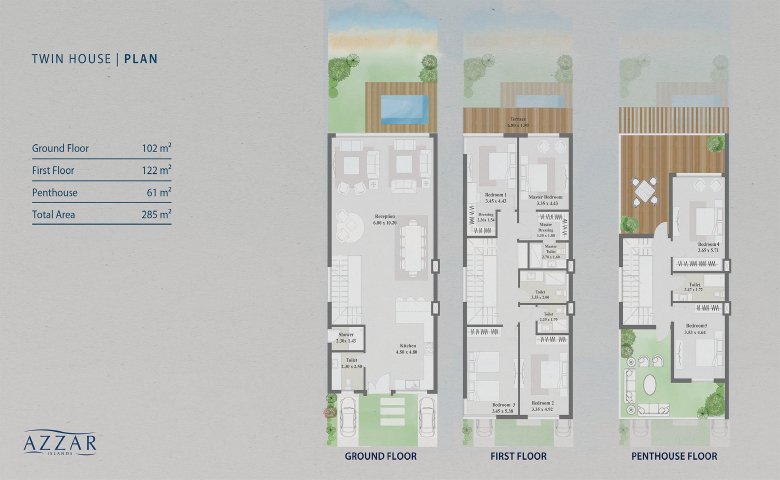 ازار ايلاند الساحل الشمالي توين هاوس 285 متر للبيع