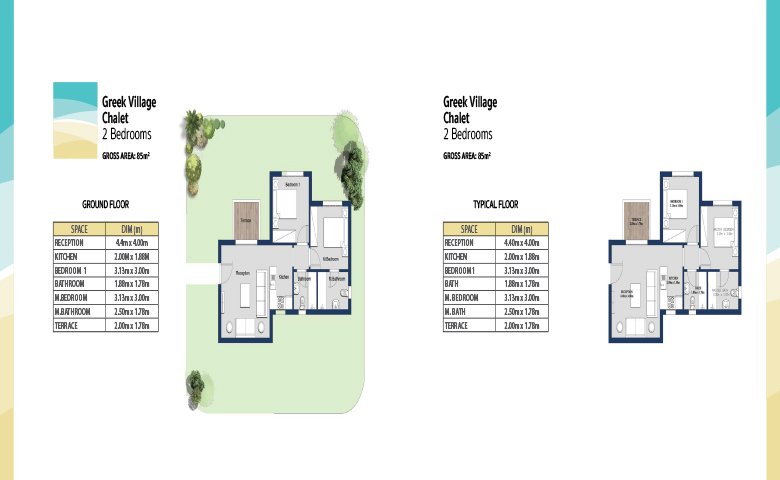 - All information, prices, layouts, payment plan, facilities, and amenities for Evia - North Coast Ground Chalet 85 M2 + Garden For Sale, 2 Bedrooms, 1 Bathroom, Reception, Kitchen, Terrace, Fully Finished By Mountain View